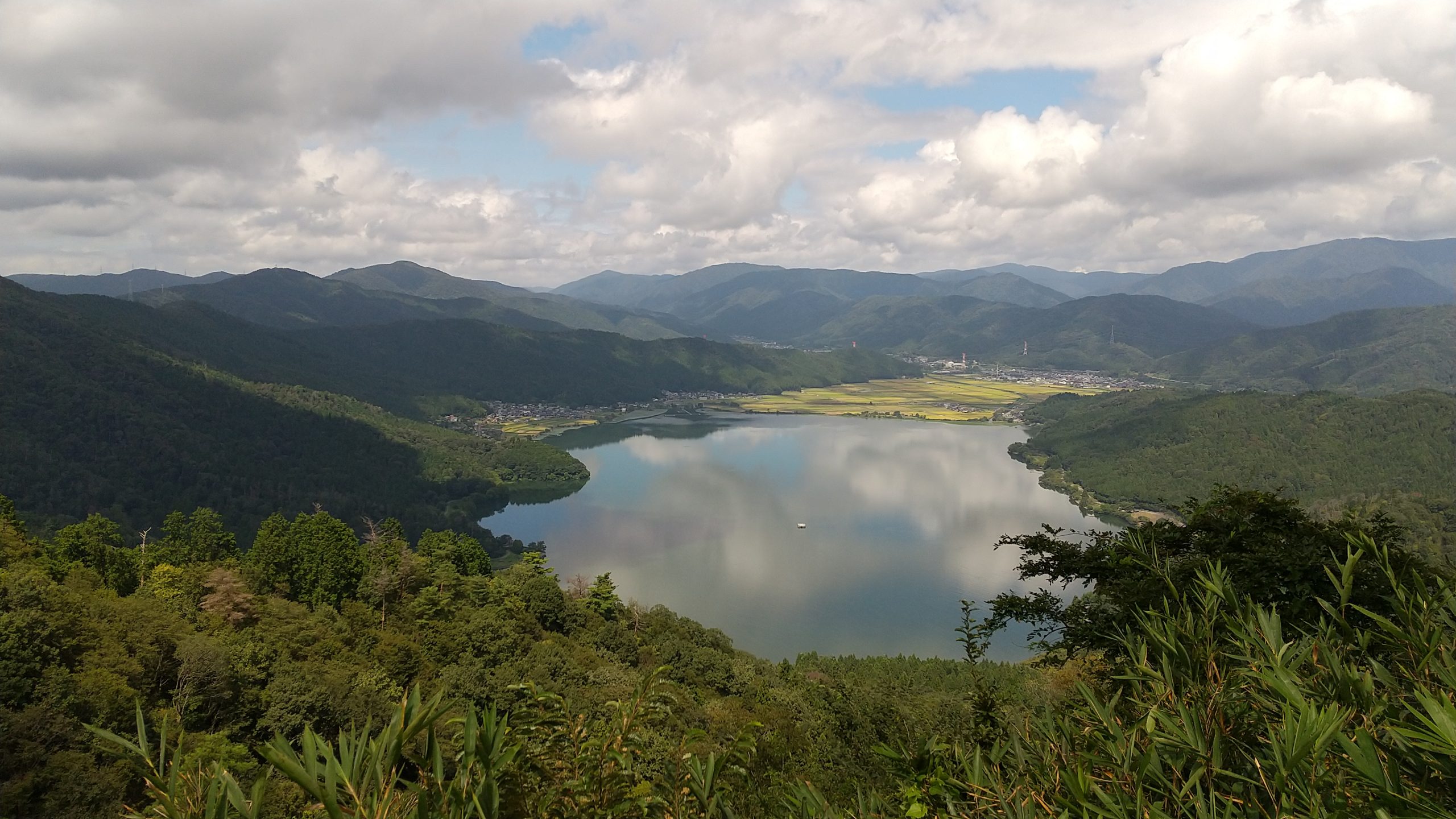 頂上からは、南は奥琵琶湖、北は余呉湖、東は伊吹山と田園風景が一望できます。