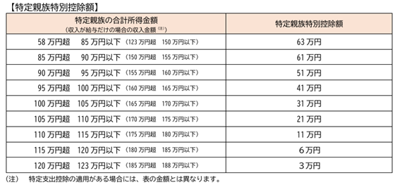特定親族とは、19歳以上23歳未満で、居住者と生計を一にする親族で、合計所得金額が58万円超123万円以下