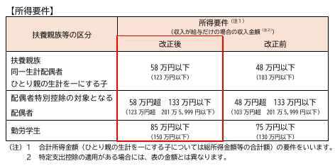 上記の変更に伴い、扶養親族に関わる要件も変更となっています。
